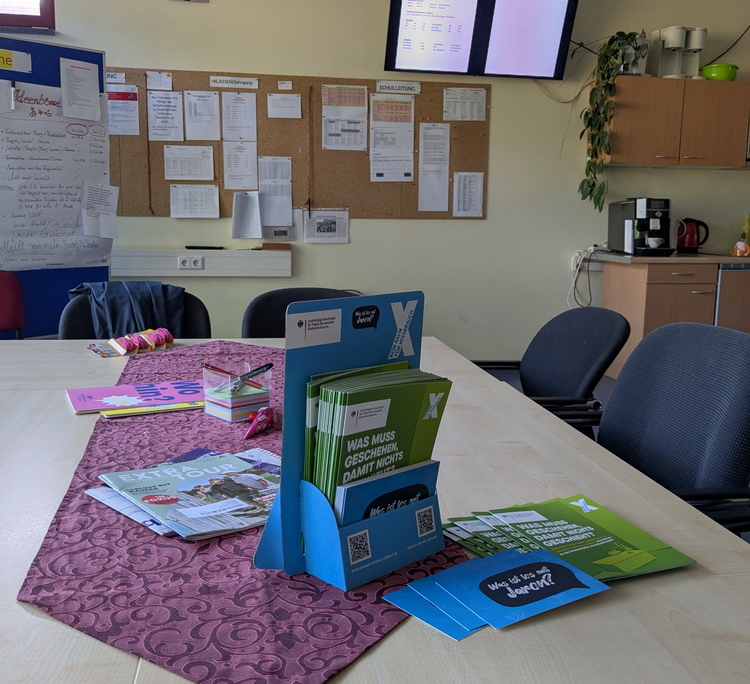 Dispenser für Broschüren, Flyer oder Postkarten in alllen Formaten die sich an Lehrer weden. Die Dispenser werden in Lehrerzimmern aufgestellt und richten sich an Lehrer.